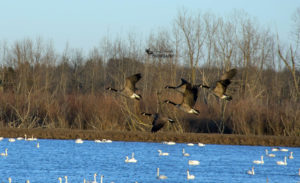 Tundra Swans migrate through Southern Ontario in the spring from their wintering grounds in Chesapeake Bay, Maryland, USA to their breeding grounds in the high Arctic region between Alaska and Baffin Island. Around 60,000 swans will stop over and refuel at Aylmer Wildlife Management Area on their long journey north.